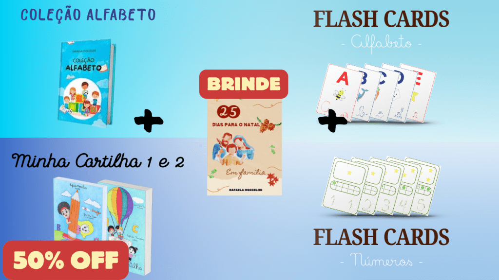 Coleção Alfabeto + Minha Cartilha 1 e 2 + Flash Cards Alfabeto + Flash Cards Números + Livro do Natal (BRINDE)